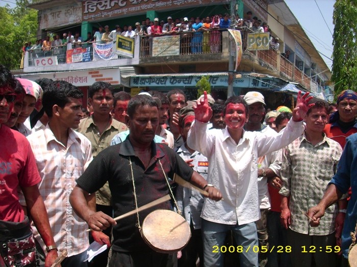 Local people in Jhalari area of K-pur protesting shortage of diesel for showing rice seeds..with road blocks.. they told Hulaki: "what does your ganatantra deliver to us?". Actually it was the republic day..jestha 15.... ke garne?