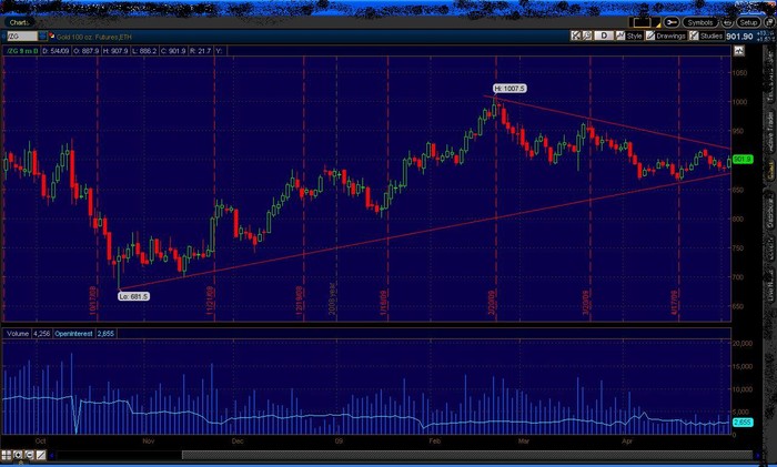 here is my pick Short ESS if price gets to 60.75 or below. Stop loss at 63.. as i had written last week, gold has break out but volume is suspect... the gold chart from last week when i posted here. if u look at todays chart u will see the breakout.. however i am too lazy to post new chart here.
