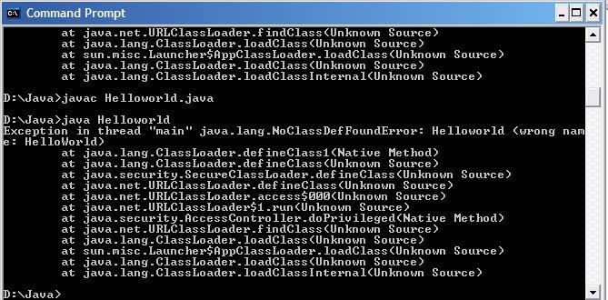 Eyefusion, You need .java extension to compile. Just "javac Helloworld" won't compile.