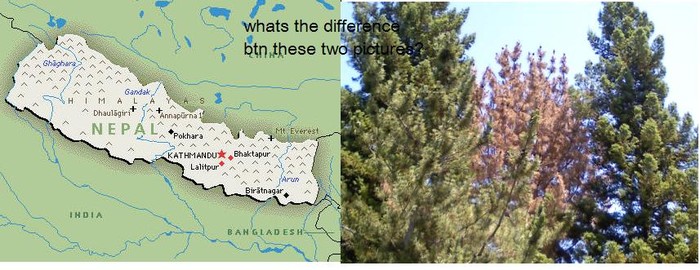 बिहानै के के सोच्न थालेछु! जब म बारान्दामा बसेर यो सुकेको सल्ल्लो को रुख लाई हेर्दाइ थिए, नेपाल को याद आयो, मेरो नेपाल !!! जस लाई आज मैले बारान्द बाट नियले । साँच्चै त्यो नेपाल जस्तै थियो। वरपर बाट दुइटा बलिया, हरिया ,फुर्तिला ,अनी प्रभाव्शली रुख हरुको बिच्मा यो रोइरहेको थियो। यो सँग केही थियन जो अरु दुई सँग थियो , न खुशी, न उत्तेजना। अरु दुई रुख का हागा हरु एश लाई क्रमश ध्क्दै थिए , यो त ना तीन लाई रूक्न सक्थ्यो न हताउन । यो त सिर्फ बसिरहेछ , बिना प्रतिबाद, जशरी नेपाल आहिले बसिरहेछ, सिमा अतीक्रमन हुँदा पनि !!!!!!!!!!!!