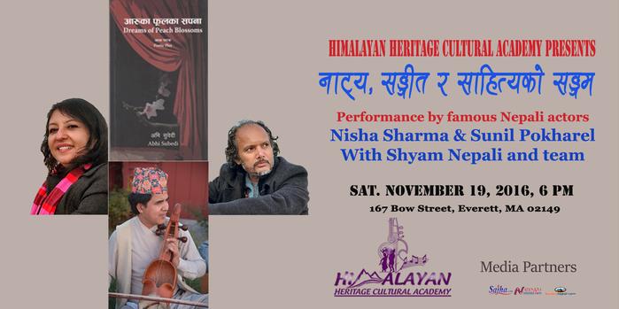Upon wide request from many people, we are presenting Nepali Theater Legends Sunil Pokharel and Nisha Sharma Pokharel once again in Bosont at Himilayan Heritage Cultural Academy on Saturday at 6:00 PM. Nepali Sarangi Maestro Shyam Nepali and his team will be supporting them. This will be different play than the last time, which is "Aruka Phoolka Sapana." There will also be Poems and Gazals recited. Please don't miss it.